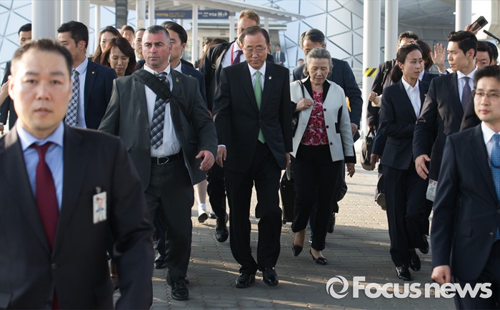 (인천공항=포커스뉴스) 방한일정을 마친 반기문 유엔 사무총장이 30일 오후 인천국제공항 KTX역에 내려 출국장으로 향하고 있다. 반 총장은 "방한 일정과 언론에 보도된 내용, 방한 중 활동과 관련해 오해가 없길 바란다"고 밝혔다.