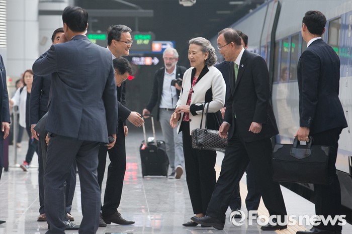 (인천공항=포커스뉴스) 방한일정을 마친 반기문 유엔 사무총장이 30일 오후 인천국제공항 KTX역에 내리고 있다. 반 총장은 "방한 일정과 언론에 보도된 내용, 방한 중 활동과 관련해 오해가 없길 바란다"고 밝혔다.