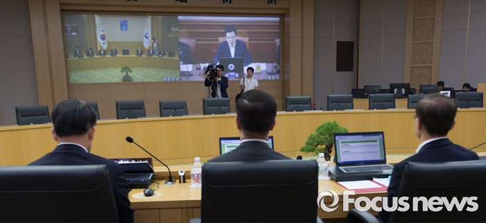 (세종=포커스뉴스) 31일 오전 세종시 정부세종청사 국무회의장에서 서울-세종 영상회의로 열린 국무회의에 참석한 국무위원들이 황교안 국무총리의 발언을 경청하고 있다.
