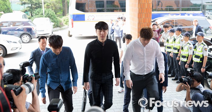 (서울=포커스뉴스) 지난 18일 20대 여성을 성폭행 하려다 미수에 그친 혐의를 받고 있는 개그맨 유상무가 31일 오전 서울 강남경찰서로 출두하고 있다.
