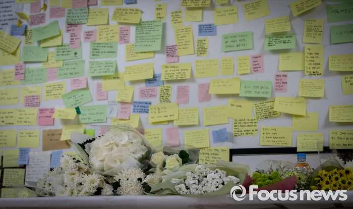 (서울=포커스뉴스) 31일 오전 서울 광진구 지하철 2호선 구의역에 스크린도어 사고로 희생된 청년을 애도하는 헌시 및 쪽지들이 붙어 있다.