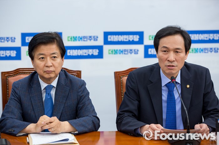 (서울=포커스뉴스) 우상호 더불어민주당 원내대표가 31일 오전 서울 여의도 국회에서 열린 '사교육비 TF 발족식'에서 모두발언 하고 있다.