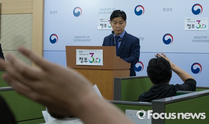 (세종=포커스뉴스) 서흥원 환경부 환경보건정책과장이 31일 오전 세종시 정부세종청사 환경부 기자실에서 가습기살균제 피해 지원 지자체와 함께 한다는 브리핑 중 질문을 받고 있다.