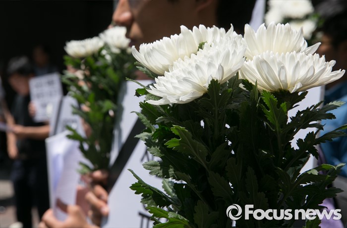 (서울=포커스뉴스) 31일 오후 서울 광진구 지하철 구의역 앞에서 한국청년연대 등 청년단체들이 스크린도어 정비 작업 중 사고로 숨진 김모(19) 씨 사건 항의 기자회견을 하고 있다.