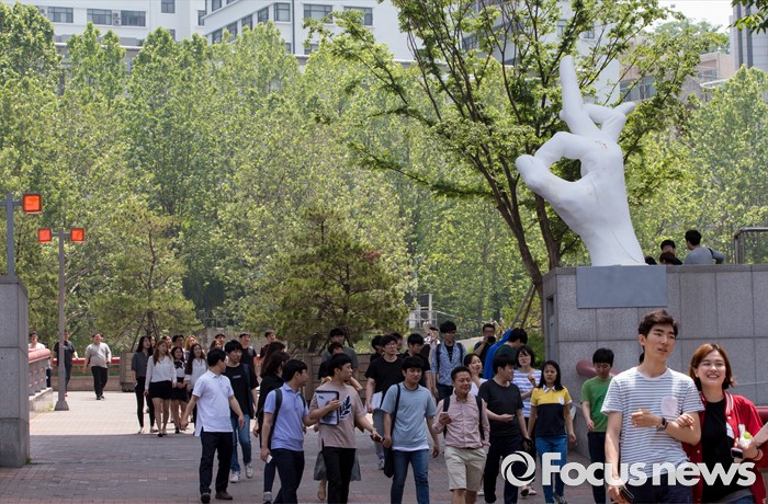 (서울=포커스뉴스) 31일 오후 서울 마포구 홍익대학교 정문에 극우성향 사이트 '일베' 상징물 조각상이 설치돼 있다. 조각상은 일간베스트저장소를 상징하는 자음 'ㅇ'과 'ㅂ' 모양을 하며 회원을 인증하는 손 모양이다. '어디에나 있고, 아무데도 없다'는 제목의 이 조각상은 조소과 4학년 홍기하씨가 '환경조각연구' 수업 과제로 제작해 야외조각전에 출품한 것이다.