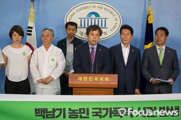 (서울=포커스뉴스) 31일 오후 서울 여의도 국회 정론관에서 야 3당 의원들과 백남기 대책위 회원들이 '백남기 농민 사건 발생 200일째'를 맞아 국회 청문회 실시를 촉구하는 기자회견을 하고 있다.
