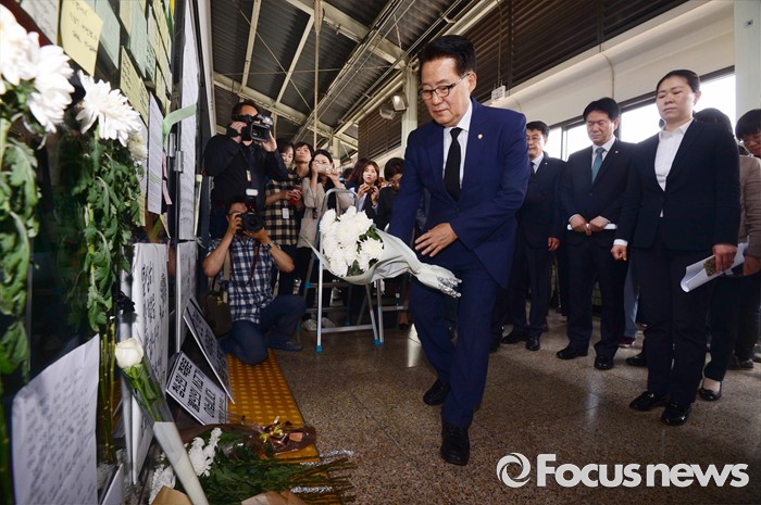 △ 구의역 사건장소 방문해 헌화하는 박지원