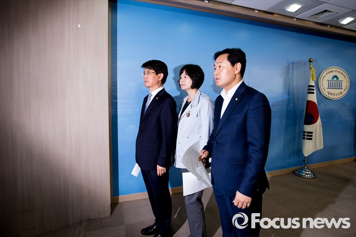 (서울=포커스뉴스) 야3당 원내수석부대표들이 31일 오후 서울 여의도 국회에서 가습기 살균제 사건, 세월호특별법 제정, 어버이연합 게이트 등 현안 공조 관련 브리핑을 마친 뒤 기자회견장을 나서고 있다. 오른쪽부터 김관영 국민의당 원내수석부대표, 이정미 정의당 원내수석부대표, 박완주 더불어민주당 원내수석부대표.