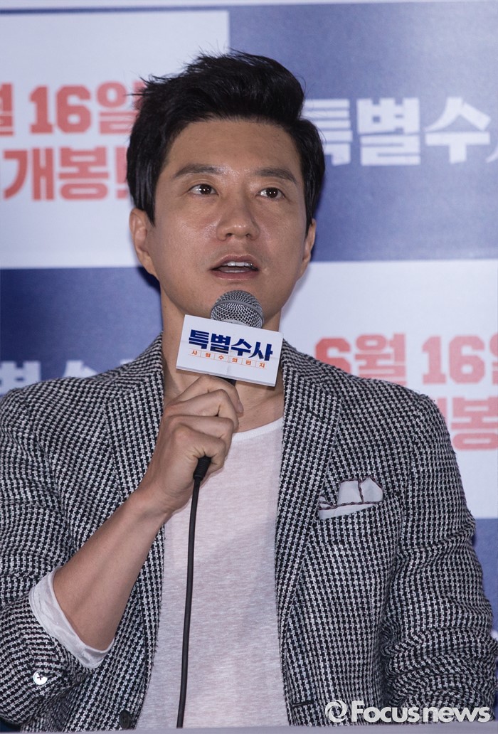 (서울=포커스뉴스) 31일 오후 서울 성동구 왕십리 CGV에서 열린 영화 ' 특별수사 : 사형수의 편지' 언론시사회에 참석한 배우 김명민이 인사말을 하고 있다.