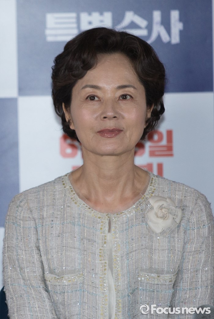 (서울=포커스뉴스) 31일 오후 서울 성동구 왕십리 CGV에서 열린 영화 ' 특별수사 : 사형수의 편지' 언론시사회에 참석한 배우 김영애가 취재진을 바라보고 있다.