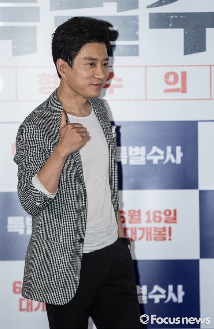 (서울=포커스뉴스) 31일 오후 서울 성동구 왕십리 CGV에서 열린 영화 ' 특별수사 : 사형수의 편지' 언론시사회에 참석한 배우 김명민이 포토타임을 갖고 있다.