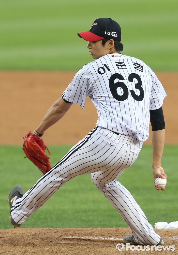 (서울=포커스뉴스) 31일 서울 잠실구장에서 열린 2016 프로야구 KIA-LG 경기에서 1회초 LG 선발투수 이준형이 투구하고 있다.