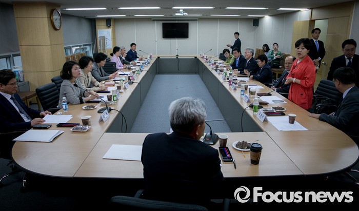 (서울=포커스뉴스) 1일 오전 서울 영등포구 새누리당 여의도연구원에서 비례대표 초선 의원들이 정규재 한국경제 주필을 초청해 연구모임을 하고 있다.