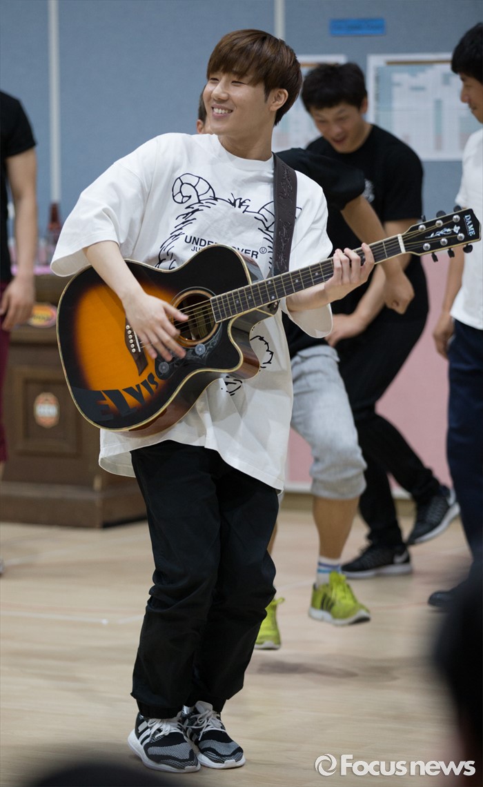 (서울=포커스뉴스) 인피니트 성규가 1일 오후 서울 종로구 아리온 연습실에서 열린 뮤지컬 '올슉업' 연습공개 현장에서 연기를 선보이고 있다.