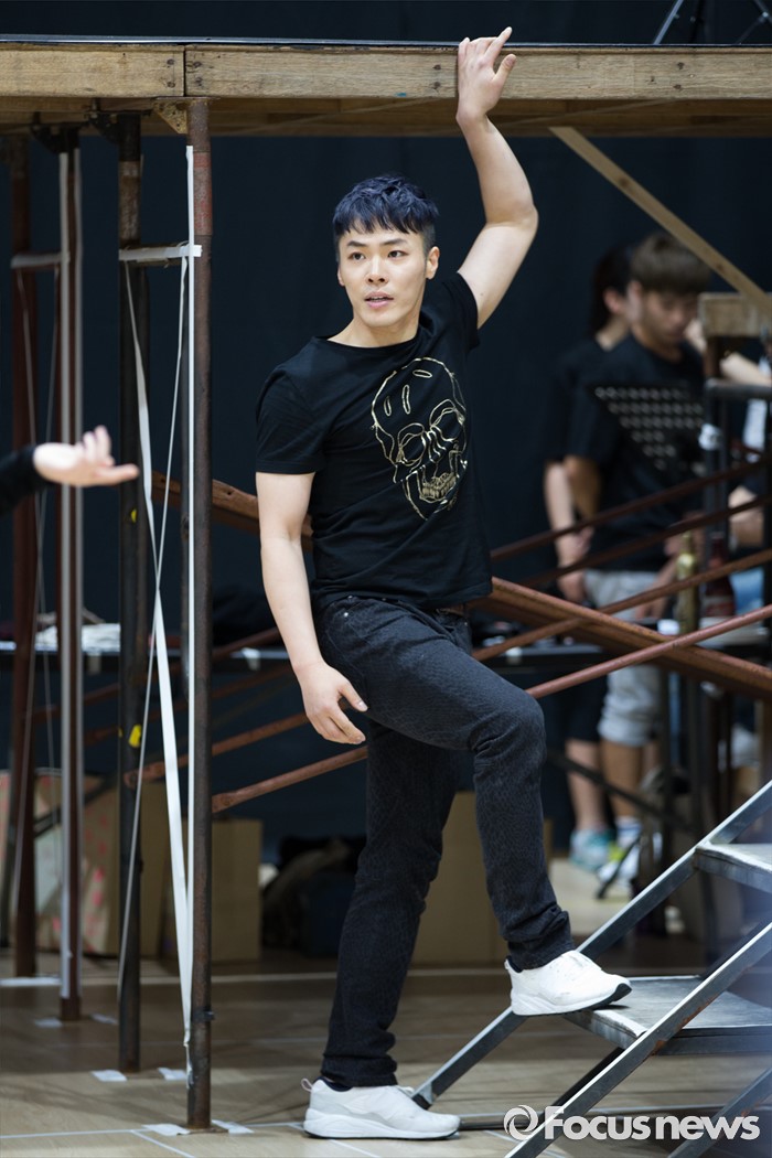 (서울=포커스뉴스) 가수 휘성이 1일 오후 서울 종로구 아리온 연습실에서 열린 뮤지컬 '올슉업' 연습공개 현장에서 연기를 선보이고 있다.