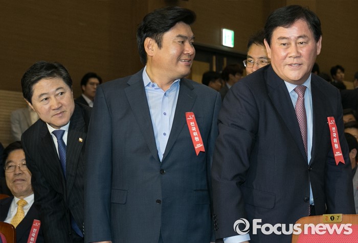 (서울=포커스뉴스) 2일 오후 서울 여의도 국회 의원회관에서 열린 새누리당 4차 전국위원회에 참석한 최경환(오른쪽부터), 원유철, 유기준 의원이 참석하고 있다.