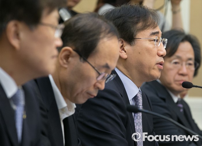 (서울=포커스뉴스) 2일 오전 서울 여의도 국회 귀빈식당에서 열린 미세먼지 대책 관련 당정협의에 참석한 이석준 국무조정실장이 발언하고 있다. 왼쪽부터 최양희 미래창조과학부 장관, 윤성규 환경부 장관, 이 실장, 정기석 질병관리본부장.