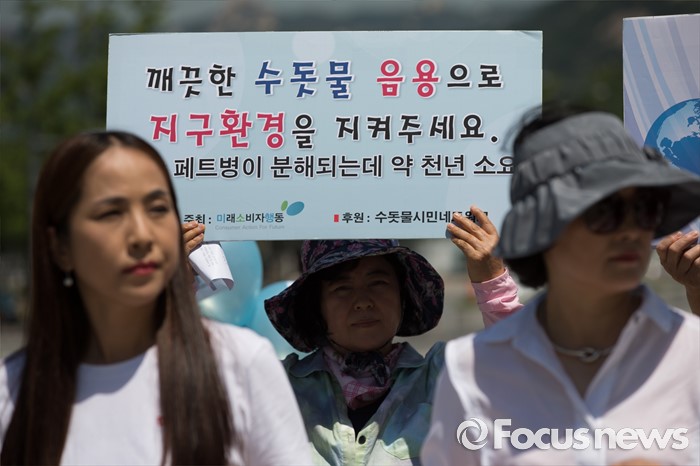 (서울=포커스뉴스) 2일 오전 서울 종로구 광화문 광장에서 수돗물 시민네트워크 관계자들이 수돗물 불신조장감시센터 방송 모니터링단 발대식을 열고 있다.