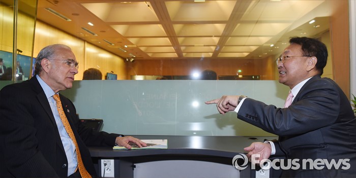 (서울=ㅍ커스뉴스) 2016년 OECD 각료이사회에 참석차. 프랑스 파리를 방문중인 유일호 부총리 겸 기획재정부 장관이 6월 1일 OECD에서 앙헬 구리아 OECD 사무총장과 면담을 하고 있다. <사진제공=기획재정부>