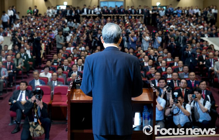 (서울=포커스뉴스) 2일 오후 서울 여의도 국회 의원회관에서 열린 새누리당 4차 전국위원회에서 공식 선출된 김희옥 혁신비대위원장이 인사말을 하고 있다.