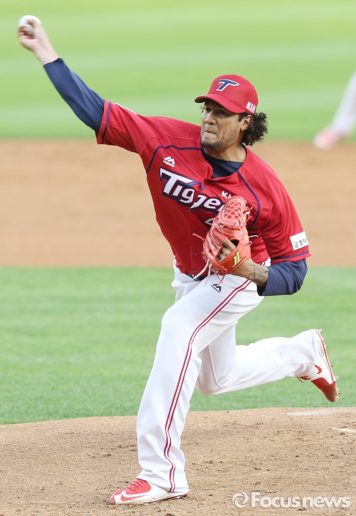 (서울=포커스뉴스) 1일 서울 잠실구장에서 열린 2016 프로야구 KIA-LG 경기에서 1회말 KIA 선발투수 헥터가 투구하고 있다.