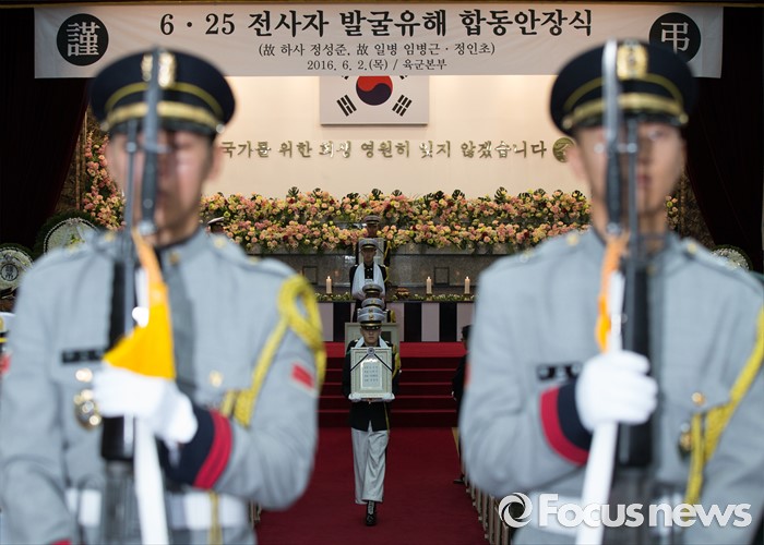 (대전=포커스뉴스) 2일 오전 대전 유성구 국립대전현충원에서 6.25 전쟁 전사자 발굴유해 3위(位) 합동안장식이 거행되고 있다.