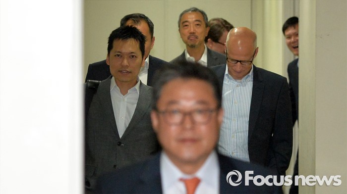 (서울=포커스뉴스) 2일 오후 서울 종로구 현대상선 본사에서 열린'G6' 해운동맹 회원사 협렵방안 회의에 참석한 제3 글로벌 해운동맹 디 얼라이언스 소속 해외 선사 관계자들이 회의를 마친 뒤 주차장으로 향하고 있다.