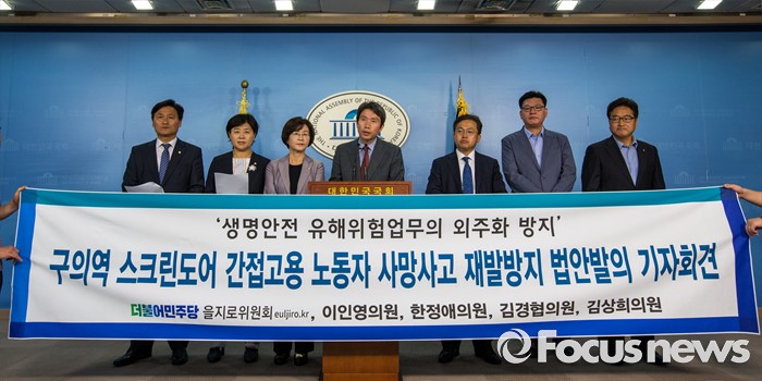 (서울=포커스뉴스) 이인영 더불어민주당 을지로위원회 의원이 2일 오후 서울 여의도 국회에서 구의역 스크린도어 간접고용 노동자 사망사고 재발방지 법안발의 관련 기자회견을 하고 있다.