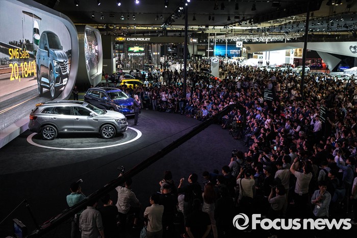 (부산=포커스뉴스) 2일 오전 부산 해운대구에 위치한 벡스코에서 열린 '2016 부산국제모터쇼'에서 르노 삼성의 새로운 SUV 'QM6' 차량이 소개되고 있다.