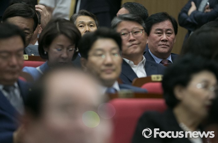 (서울=포커스뉴스) 2일 오후 서울 여의도 국회 의원회관에서 열린 새누리당 4차 전국위원회에 참석한 최경환(오른쪽) 의원 등이 자리하고 있다.