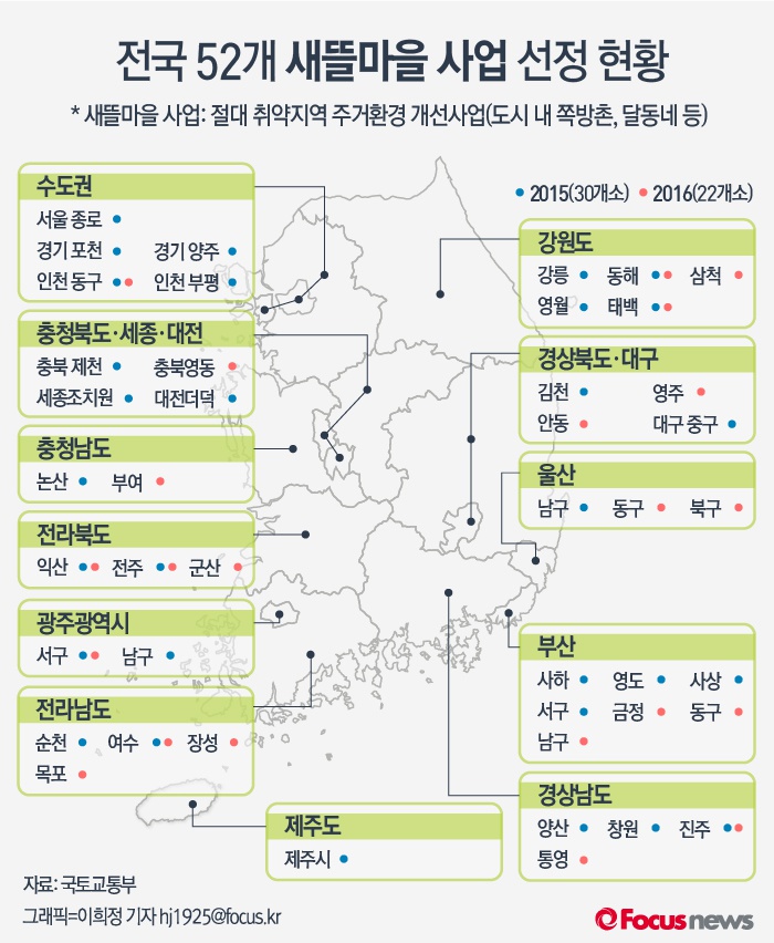 | △ [그래픽] 전국 52개 새뜰마을 사업 선정 현황 |
