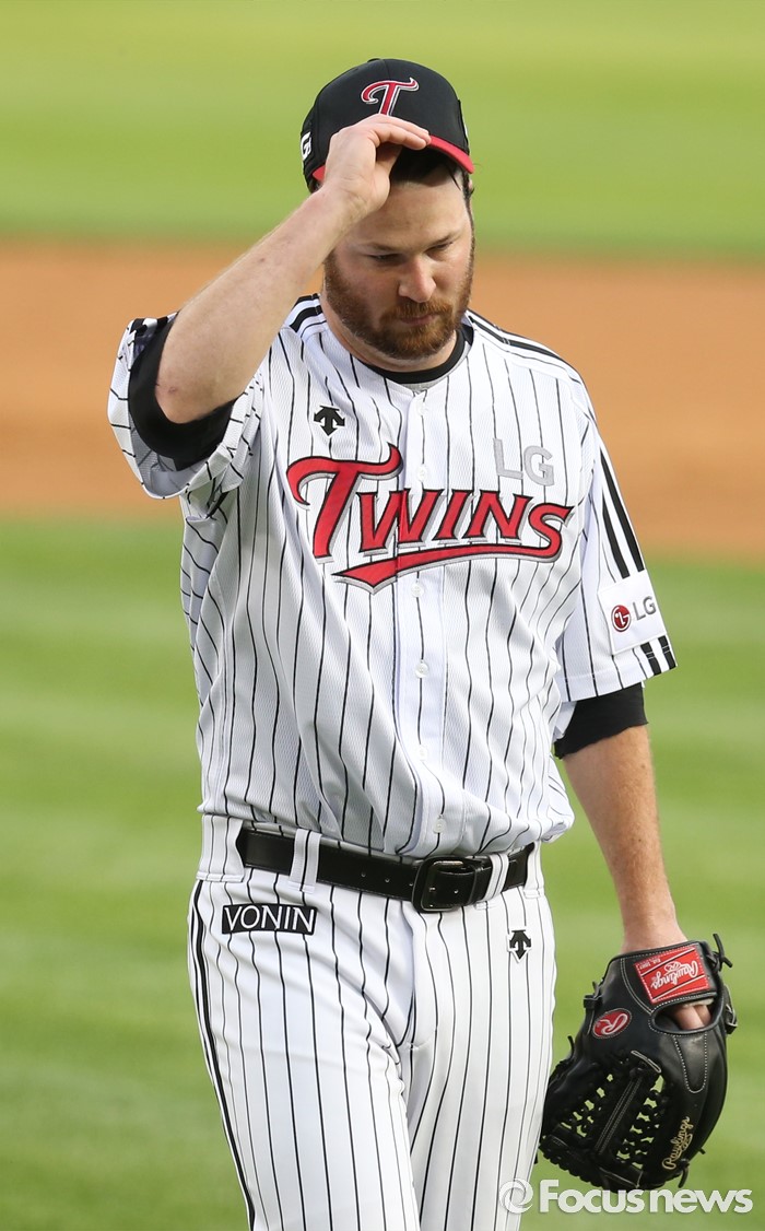 (서울=포커스뉴스) 1일 서울 잠실구장에서 열린 2016 프로야구 KIA-LG 경기에서 LG 선발투수 코프랜드가 2회 수비를 마치고 덕아웃으로 들어가며 모자를 고쳐 쓰고 있다.