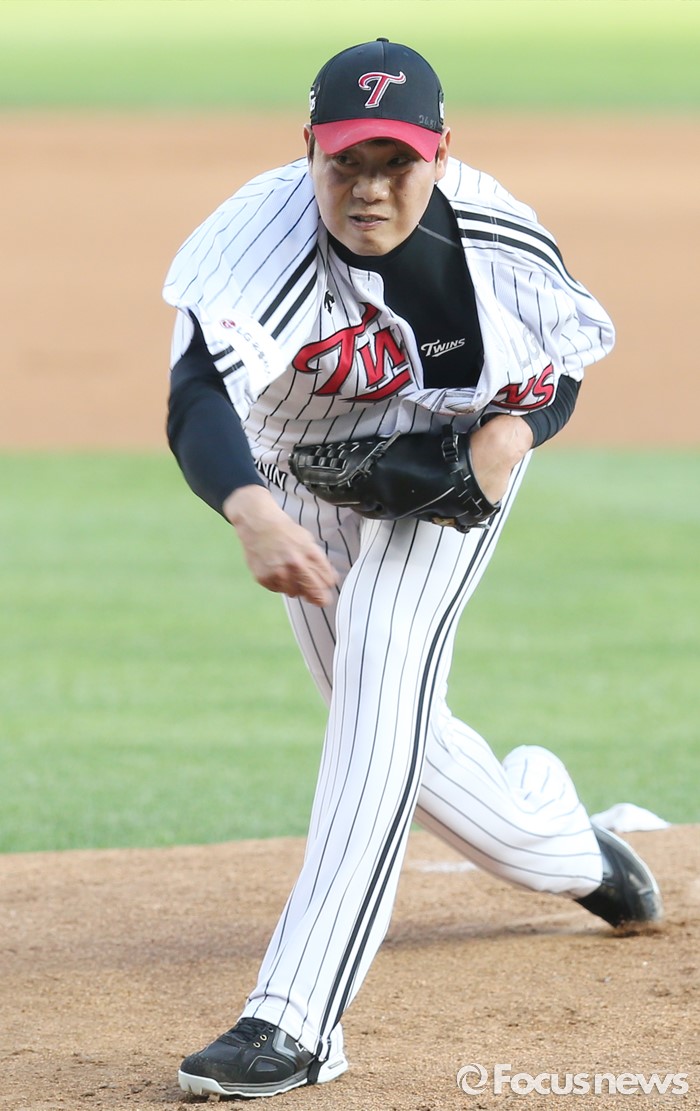(서울=포커스뉴스) 2일 서울 잠실구장에서 열린 2016 프로야구 KIA-LG 경기에서 1회초 LG 선발투수 류제국이 투구하고 있다.