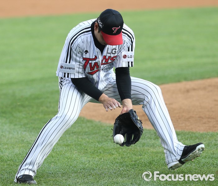 | △ 번트 타구 잡는 LG 류제국 |