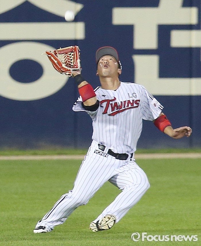 (서울=포커스뉴스) 2일 서울 잠실구장에서 열린 2016 프로야구 KIA-LG 경기 5회초 LG 좌익수 이병규가 KIA 이범호의 뜬공 타구를 잡고 있다.
