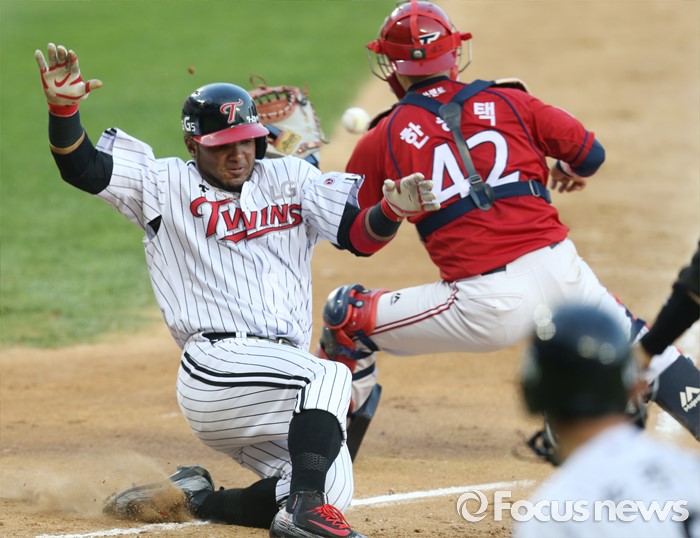 홈에서 슬라이딩하는 LG 히메네스