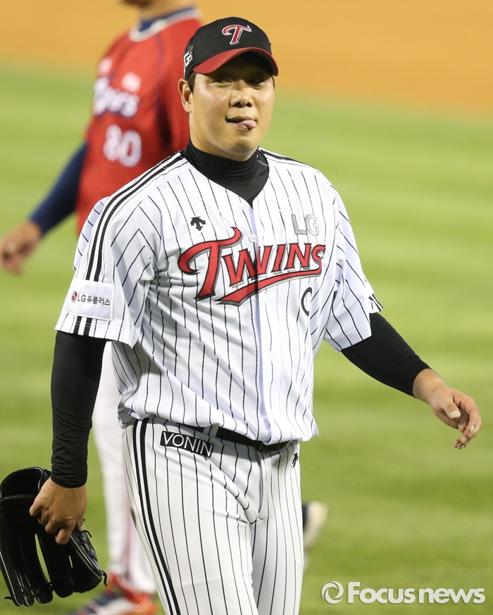 (서울=포커스뉴스) 2일 서울 잠실구장에서 열린 2016 프로야구 KIA-LG 경기에서 LG 투수 류제국이 6회 수비를 마치고 밝은 표정으로 덕아웃으로 들어가고 있다.