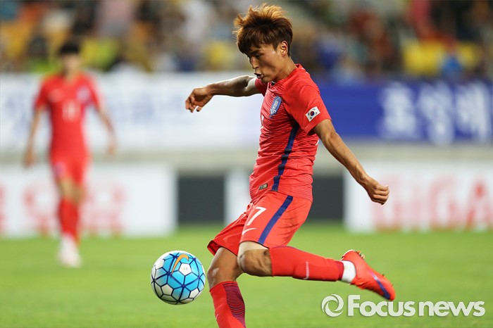 (수원=포커스뉴스) 2일 오후 경기 수원월드컵경기장에서 열린 2016 4개국 올림픽국가대표 축구대회 대한민국과 나이지리아의 경기에서 대한민국 문창진이 슛을 시도 하고 있다.