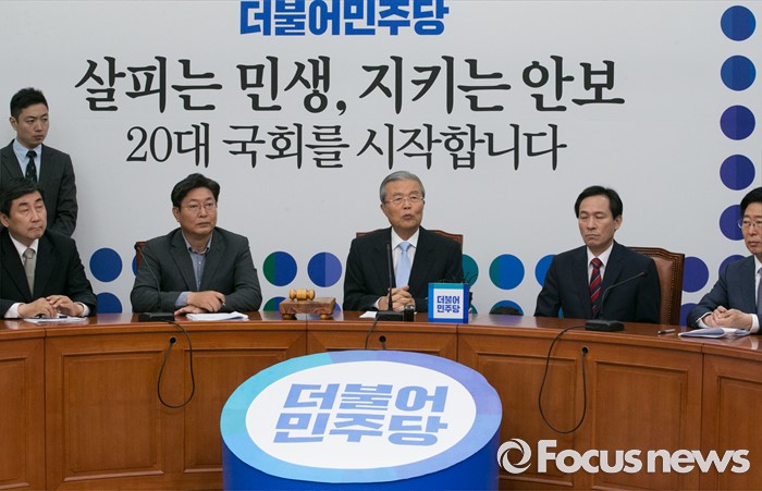 (서울=포커스뉴스) 3일 오전 서울 여의도 국회에서 열린 더불어민주당 비상대책위원회의에 참석한 김종인(오른쪽 세번째) 비대위 대표가 모두발언을 하고 있다.