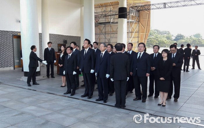 (서울=포커스뉴스) 김희옥 새누리당 혁신비대위원장과 정진석 원내대표 등이 3일 오전 동작구 국립서울현충원을 방문해 참배를 위해 준비하고 있다.