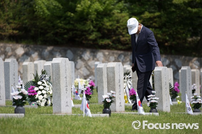 (서울=포커스뉴스) 현충일을 사흘 앞둔 3일 오전 서울 동작구 국립서울현충원에서 한 시민이 국가유공자묘역을 찾고 있다.