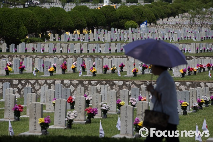 (서울=포커스뉴스) 현충일을 사흘 앞둔 3일 오전 서울 동작구 국립서울현충원에서 한 시민이 국가유공자묘역을 찾고 있다.
