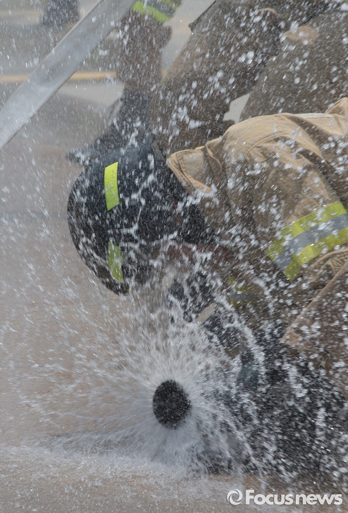 (청주=포커스뉴스) 3일 오전 충북 청주 무심천시민체육공원에서 열린 충북소방기술경연대회에 참가한 소방대원들이 기량을 겨루고 있다.