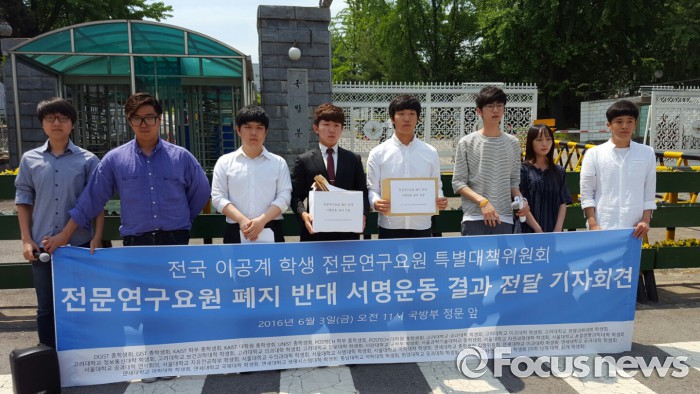 (서울=포커스뉴스) 전국 이공계 대학생들이 국방부에 전문연구요원 제도 폐지 계획의 백지화를 요구했다.