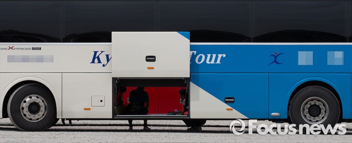 (세종=포커스뉴스) 최고 기온이 30도 가까이 오르며 초여름 날씨를 보인 3일 오후 세종시 정부세종청사 주차장에서통근버스 기사들이 트렁크에서 더위를 피해 휴식을 취하고 있다.