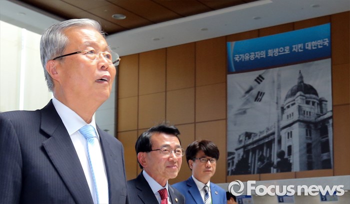 (서울=포커스뉴스) 김종인(왼쪽) 더불어민주당 비대위 대표가 현충일을 사흘 앞둔 3일 오후 서울 강동구 중앙보훈병원을 방문해 이동하고 있다.