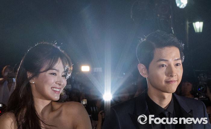 (서울=포커스뉴스) 3일 오후 서울 동대문구 경희대학교 평화의전당에서 열린 '2016 백상예술대상'에 참석한 배우 송중기-송혜교가 레드카펫을 밟고 있다.