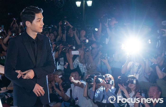 (서울=포커스뉴스) 3일 오후 서울 동대문구 경희대학교 평화의전당에서 열린 '2016 백상예술대상'에 참석한 배우 송중기가 레드카펫을 밟고 있다.
