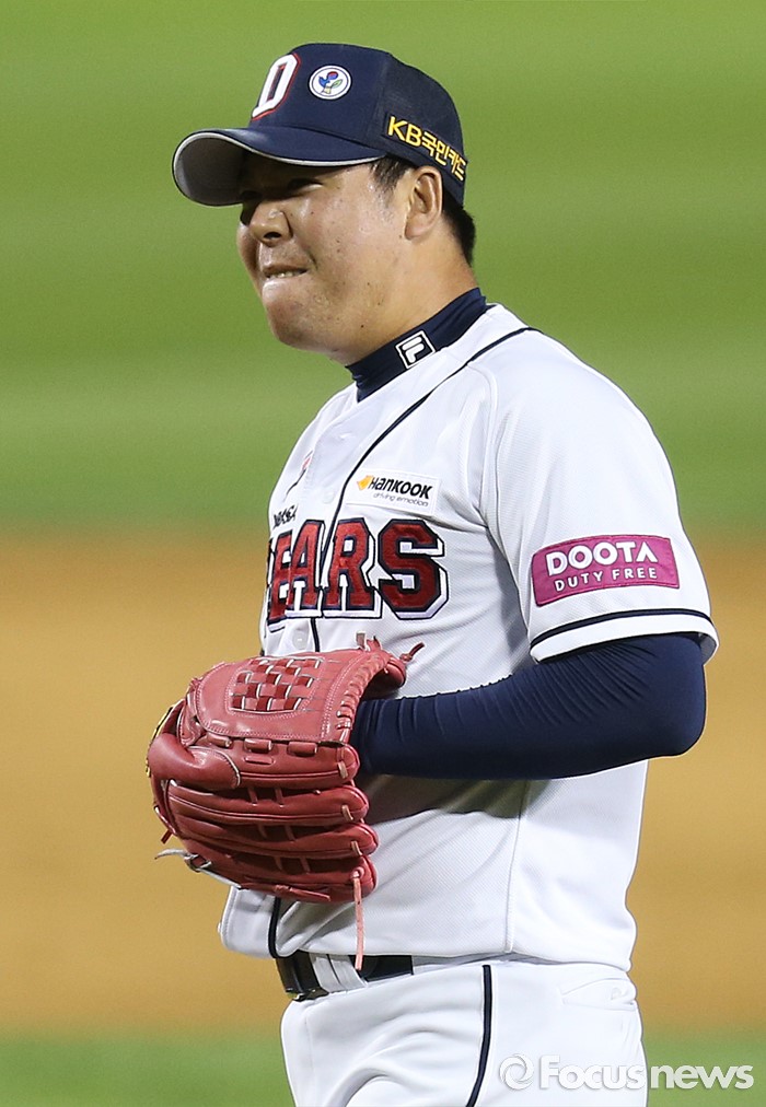 | △ 고통을 참고 있는 두산 이현승 |