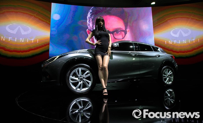 (부산=포커스뉴스) 3일 오후 부산 해운대구 벡스코에서 '2016 부산 국제모터쇼'가 공식 개막한 가운데 레이싱걸이 관람객들을 향해 포즈를 취하고 있다. 이번 국제모터쇼는 오는 12일 까지 계속 된다.